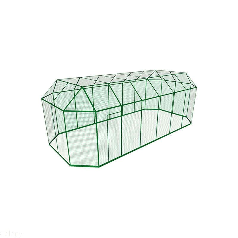 Dimensions : . Longueur : 742 cm . Largeur : 342 cm . Hauteur : 265 cm . Grillage : maille de 25 mm x 25 mm . Epaisseur du grillage : 2,2 mm